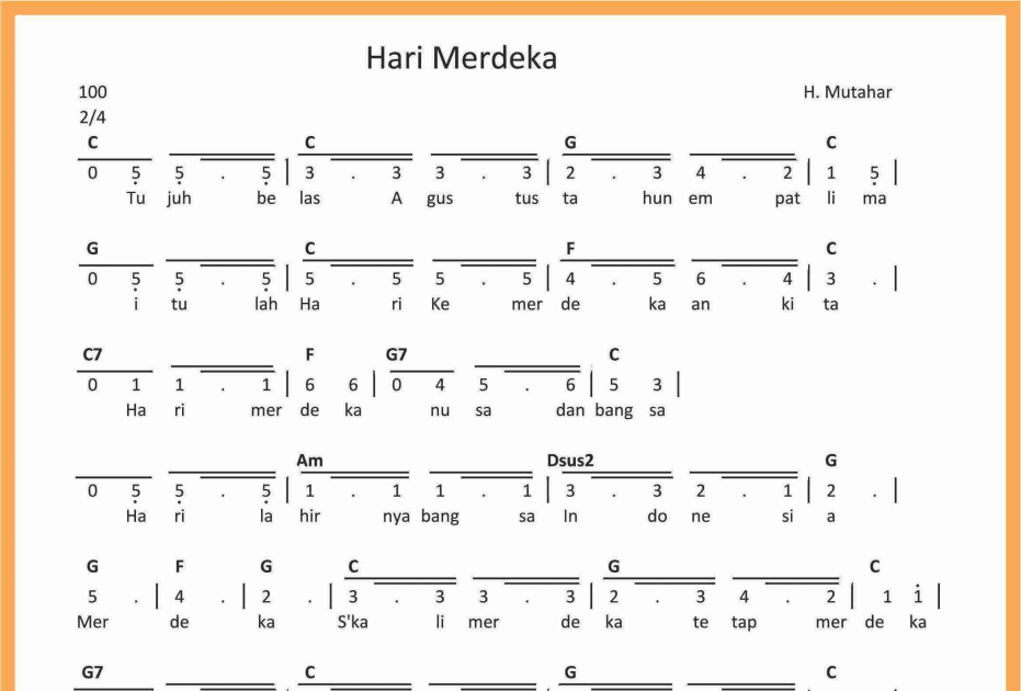 Not Angka Hari Merdeka SEPUTAR MUSIK